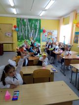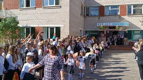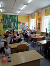 Самые старшие ученики приняли в дружную школьную семью самых младших. Первоклассники прочитали стихотворения, девятиклассники пожелали им интересной, увлекательной школьной жизни.